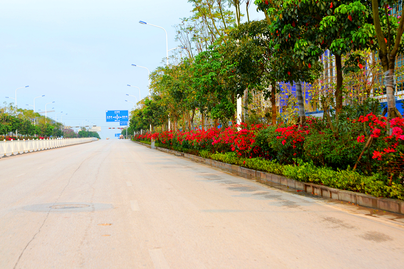 本項(xiàng)目位于國凱大道,于201412月開工,20151月完工,綠化面積約1200㎡,種植主要品種有:朱槿、夾竹桃、非洲茉莉、木槿、紅花繼木、三角梅、星光榕、亮葉朱蕉、銀邊沿階草等
