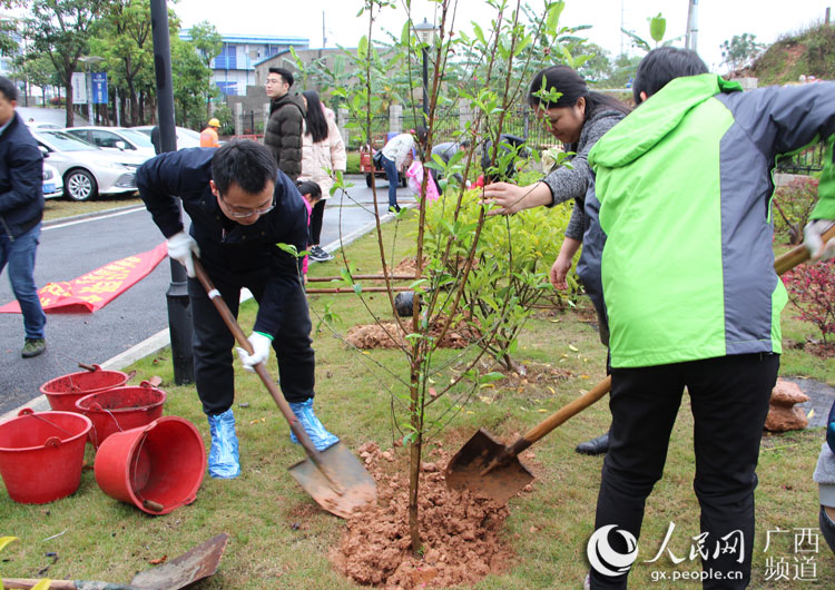 人民網(wǎng)南寧3月11日電 陽春三月,萬物復蘇,生機勃發(fā)。3月9日,細雨紛飛,春寒料峭,但是南寧經(jīng)開區(qū)的綠港·國際中心卻人潮涌動,愛意濃濃。原來,南寧綠港集團正在舉行“情暖童心·攜手植綠”學雷鋒志愿服務月活動,200多名職工和家屬一起參加了當天的愛心義賣、愛心捐贈和義務植樹活動。