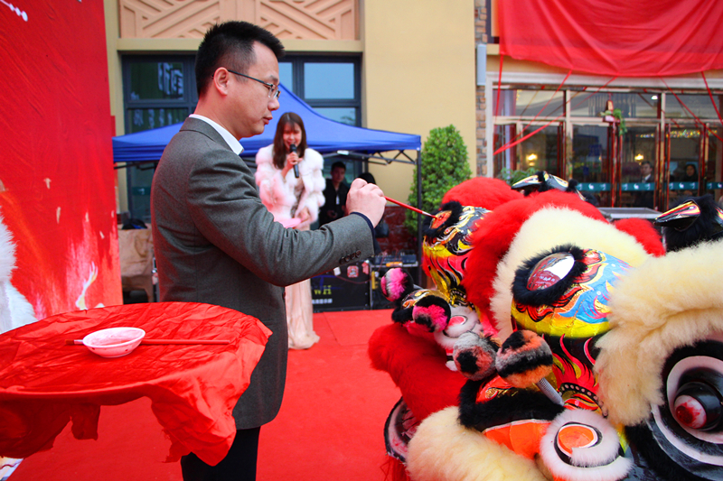 綠港集團(tuán)董事長龔國強(qiáng)為祥獅點睛