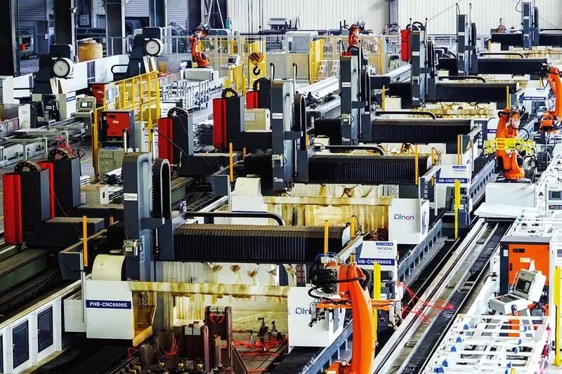 南南鋁業(yè)的自動(dòng)化加工中心內(nèi),機(jī)器人正在加工鋁合金型材。    記者葉子榕攝