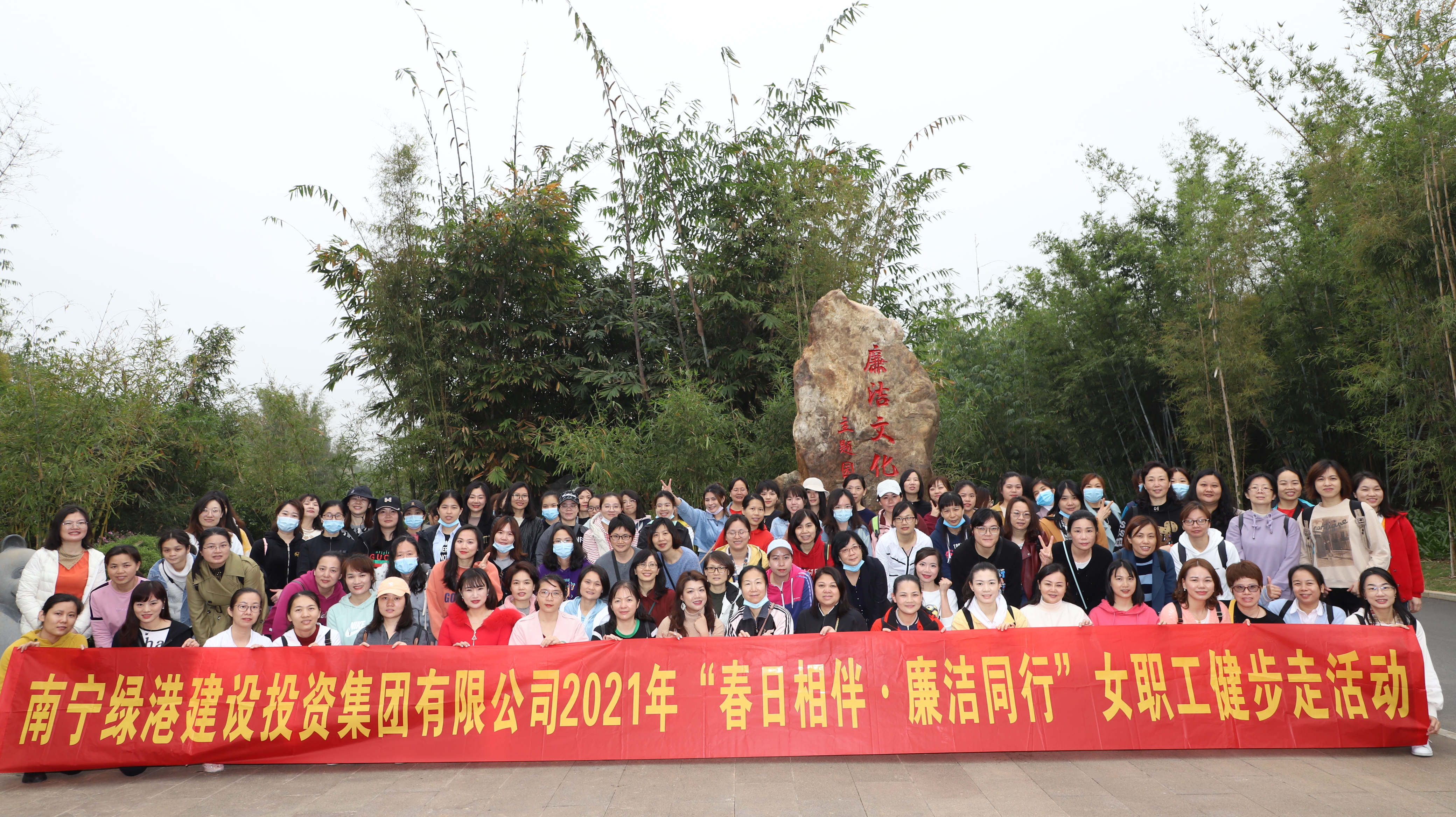 陽春三月,春意盎然。為慶祝第111個“三八”國際婦女節(jié),充分展示婦女職工積極進(jìn)取、昂揚(yáng)向上的巾幗風(fēng)采,弘揚(yáng)“綠色運(yùn)動”健康理念,倡導(dǎo)健康文明生活方式,3月8日,綠港集團(tuán)黨委、綠港集團(tuán)工會、綠港集團(tuán)女工委在南寧青秀山共同舉辦“春日相伴·廉潔同行”健步走活動。集團(tuán)公司黨委書記、董事長龔國強(qiáng),集團(tuán)公司黨委副書記、總經(jīng)理鄧?yán)^慧,集團(tuán)公司黨委委員、副總經(jīng)理陸羿冰,集團(tuán)公司黨委委員、副總經(jīng)理、工會主席黃麗琴,集團(tuán)公司財務(wù)總監(jiān)關(guān)月娥出席活動。綠港集團(tuán)全體管理崗位女職工及其親屬約130人參加。