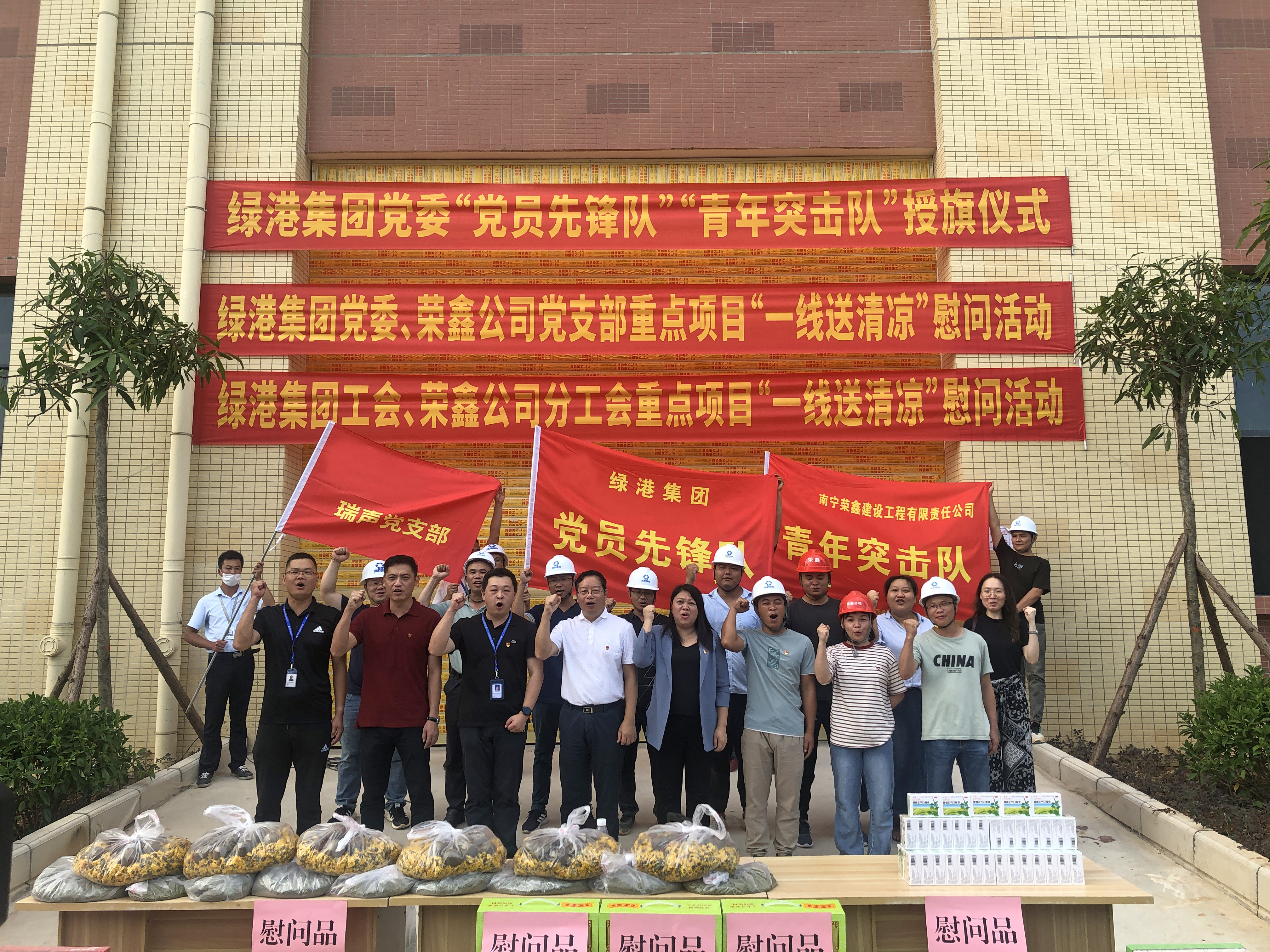 7月14日,由綠港集團黨委主辦,榮鑫公司黨支部、榮鑫公司工會承辦的 “黨員先鋒隊”“青年突擊隊”授旗暨“一線送清涼”活動在瑞聲三期項目現(xiàn)場開展。榮鑫公司黨支部書記、總經(jīng)理李汝埠帶領(lǐng)榮鑫公司領(lǐng)導(dǎo)班子,頂著烈日、迎著熱浪,來到集團重點項目——瑞聲科技(南寧)廠房裝修工程(三期)施工現(xiàn)場,親切看望慰問在炎炎夏日中奮戰(zhàn)在項目建設(shè)一線的“黨員先鋒隊”“青年突擊隊”隊員及各施工班組的建設(shè)者,送去了集團黨委、榮鑫公司黨支部、榮鑫公司工會的關(guān)心和敬意,為他們加油鼓勁、提振士氣。瑞聲科技(南寧)有限公司副總經(jīng)理李博及項目相關(guān)負責(zé)人參加活動。