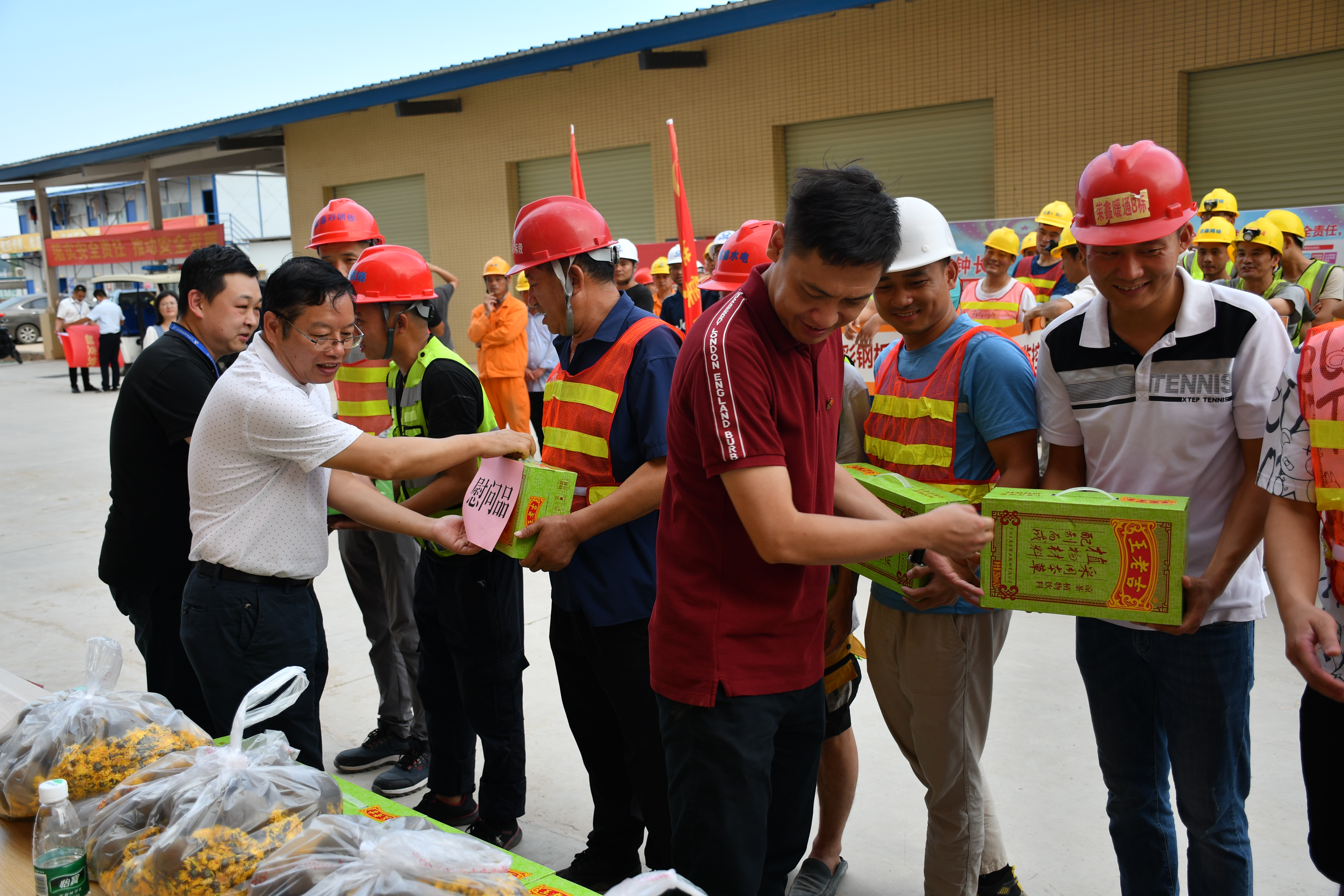 榮鑫公司領(lǐng)導(dǎo)班子與瑞聲公司副總經(jīng)理李博一起為一線勞動者送上清涼慰問品
