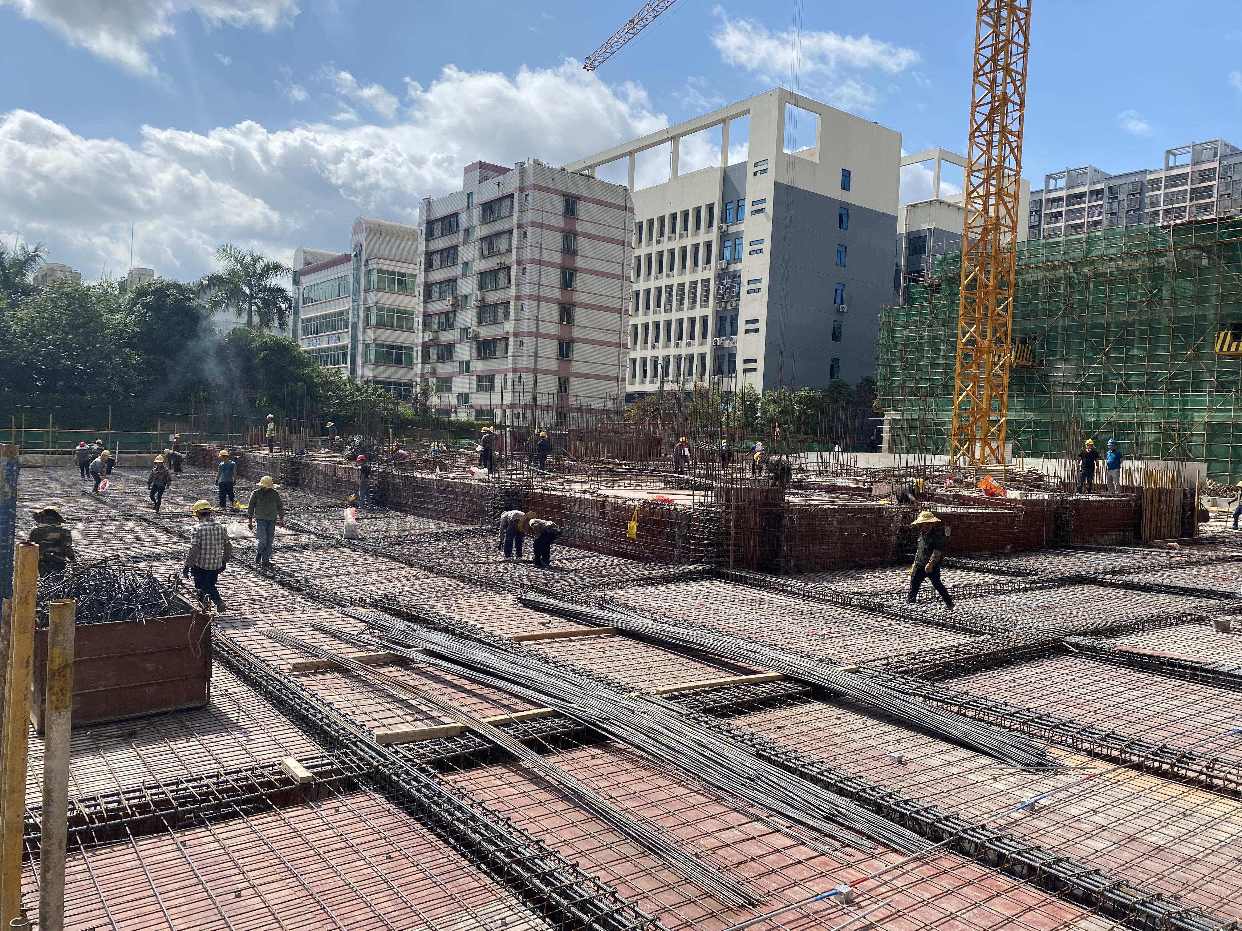 按照施工計(jì)劃,項(xiàng)目2#樓為最后施工的一個(gè)單體。因工作面有限,加上雨季施工,土方施工遭遇到前所未有的困難,最后幾千立方土,每一方都需要勾機(jī)采用二次甚至三次轉(zhuǎn)運(yùn)的方式才能裝車外運(yùn),對(duì)預(yù)定工期兌現(xiàn)造成極大影響。為克服困難,自土方開挖以來,綠港集團(tuán)下屬嘉通公司緊盯預(yù)售節(jié)點(diǎn)為目標(biāo),結(jié)合工程實(shí)際,制定了詳細(xì)、合理的搶工計(jì)劃,并迅速建立一支“強(qiáng)管理、控疫情、重安全、抓質(zhì)量”工作團(tuán)隊(duì),全員爭(zhēng)分奪秒追上施工“加速列車”,與時(shí)間賽跑。同時(shí)要求參建單位優(yōu)化每道施工工序搭接,合理穿插施工,實(shí)行小雨不停工、大雨制造條件施工、天晴三班制搶工的施工方案。在先后克服了疫情反復(fù)、揚(yáng)塵噪音管控以及惡劣天氣帶來的各種問題,最終于6月30日取得喜人進(jìn)展,項(xiàng)目順利完成全部地下室工程的主體施工。