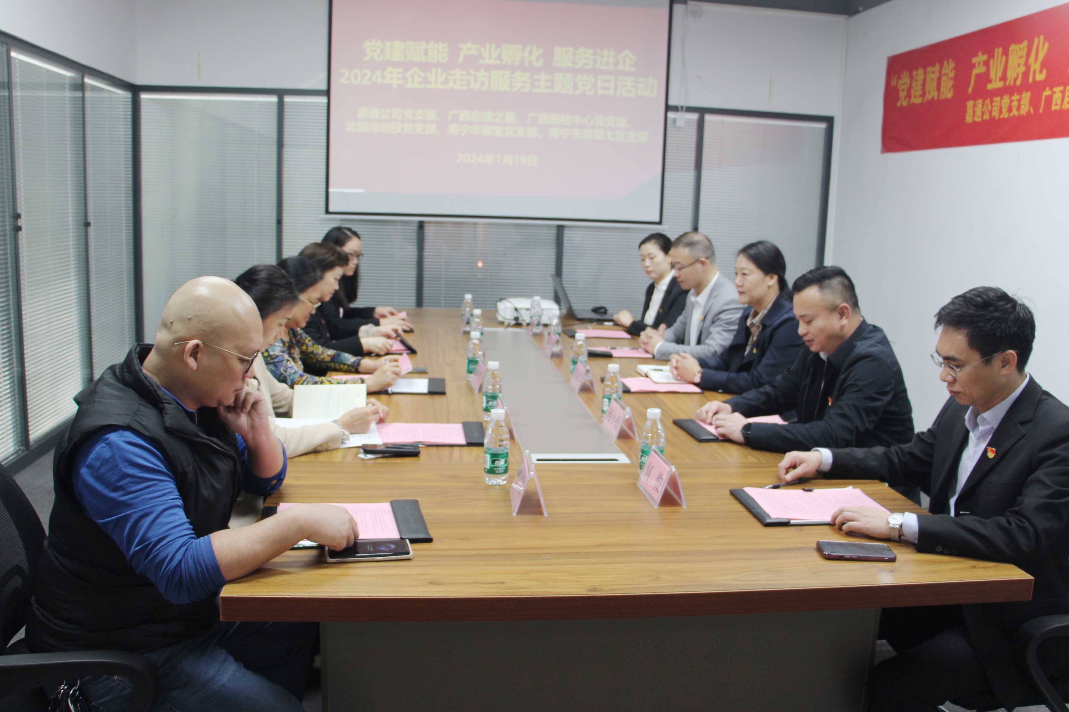 為深化黨建與業(yè)務(wù)融合,通過黨建引領(lǐng)提升企業(yè)服務(wù)質(zhì)量,發(fā)揮好產(chǎn)業(yè)經(jīng)濟(jì)穩(wěn)定器功能,以做強(qiáng)“鏈上黨建”推動(dòng)產(chǎn)業(yè)高質(zhì)量發(fā)展,1月19日,嘉通公司黨支部深入金凱工業(yè)園聯(lián)合廣西啟迪之星公司、廣西器檢中心黨支部、北部灣創(chuàng)投黨支部、南寧華御堂黨支部、南寧市政第七黨支部開展“黨建賦能 產(chǎn)業(yè)孵化 服務(wù)進(jìn)企”2024年“迎新春 寫春聯(lián) 送祝?!逼髽I(yè)走訪服務(wù)主題黨日活動(dòng),嘉通公司黨支部黨員代表及職工代表參加本次活動(dòng)。